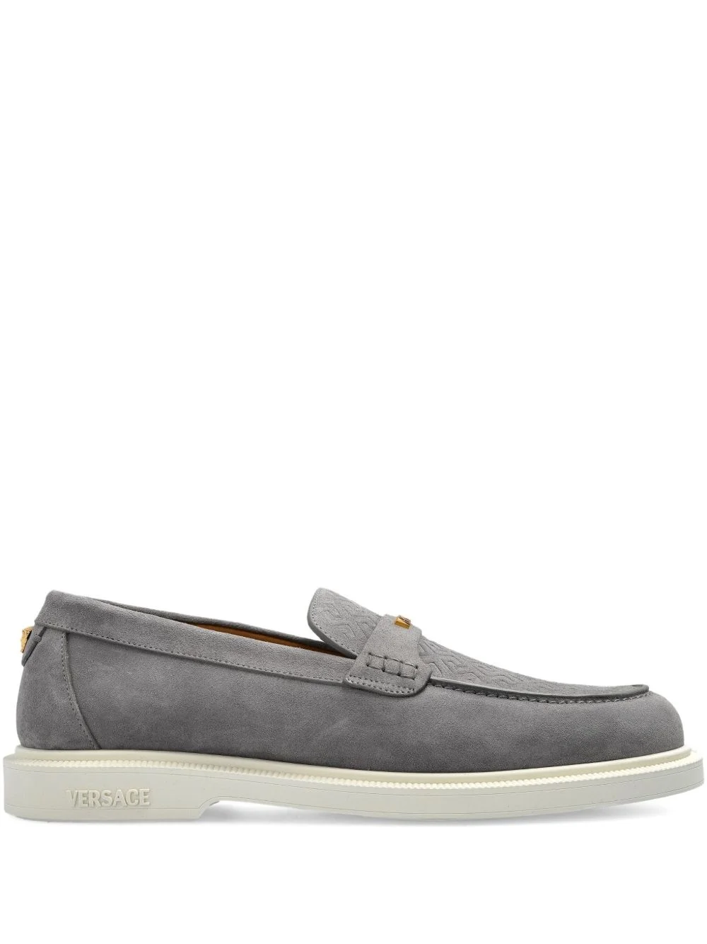suede loafers Highlights - Light grey - Gold-tone logo detailing - Moccasin stitching - Padded collar - Rubber sole Made in Italy Composition Sole: Rubber 100% Lining: Calf Leather 100% Outer: Calf Suede 100%