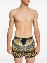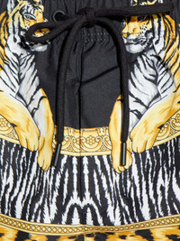 tiger baroque-print swim shorts Highlights - Black - Tiger print - Baroque print - Drawstring fastening - Waistband - Patterned trims - Be mindful to try on swimwear over your own garments. Made in Italy Composition Polyester 100%