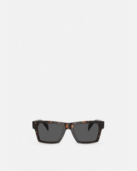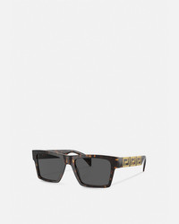 DETAILS A squared shape, these sunglasses feature acetate frames and accent Greca hardware at the temples. - Greca hardware - Frame color: Havana - Temple color: Havana - Lens color: Dark gray - Frame: Acetate - Temple: Nylon Item: O4445-O1088754_RTU_TU_ONUL__ SIZE & FIT - Lens width: 2.1" - Bridge: 0.7" - Temple: 5.7"