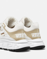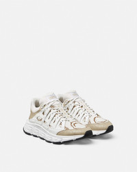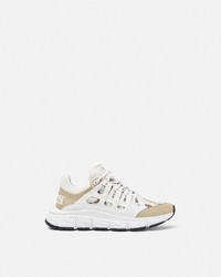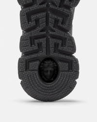 DETAILS The Trigreca sneakers bring innovation to the brands everevolving aesthetic Featuring a tonal design threedimensional Greca executions on the soles offer an impactful landing with the Greca Cushioning System In a subtle nod to Versaces home city the uppers crafted from jacquard in a Barocco pattern have a discrete print of Milans coordinates - Barocco pattern - Low top - Lace up - Round toe - Trigreca print on tongue and heel counter - Printed coordinates of Milan - Top-stitch detailing - Outer composition: 100% Calf leather - Lining 1: 100% Polyester - Lining 2: 100% Calf leather - Trim 1: 54% Nylon, 39% Cotton, 7% Polyester - Trim 2: 100% Calf leather - Trim 3: 90% Polyester, 10% Elastane - Sole: 100% Rubber Item: DSU8094-1A09769_6K770 SIZE & FIT - The shoe weighs approximately 24.7 oz / 0.7 kg for the model size 44 IT - Fit is true to size, we recommend taking your normal size