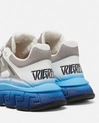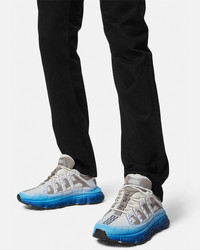 The Trigreca trainers bring innovation to the brand's ever-evolving aesthetic. Featuring a gradient design, three-dimensional Greca executions on the soles offer an impactful landing with the "Greca Cushioning System." In a subtle nod to Versace's home city, the uppers have a discrete print of Milan's coordinates. DETAILS & CARE - Low top - Lace up - Round toe - Trigreca print on tongue and heel counter - Printed coordinates of Milan - Top-stitch detailing - Outer composition: 100% Calf leather - Lining 1: 100% Polyester - Lining 2: 100% Calf leather - Sole: 100% Rubber - Trim 1: 68% Cotton, 32% Polyester - Trim 2: 100% Calf leather - Trim 3: 90% Polyester, 10% Elastane SIZE & FIT - All sizes fit Italian standards - Fits true to size, take your normal size
