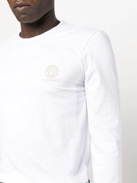 two-piece T-shirt set from VERSACE featuring white, stretch-cotton, logo print at the chest, crew neck and long sleeves. Highlights - White - Stretch-cotton - Logo print at the chest - Crew neck - Long sleeves Imported Composition Cotton 94%,Elastane 6%