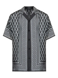 Grecca-trim silk shirt Highlights - Grey/black - Monogram pattern - Signature grecca trim - Button fastening - Short sleeves - Camp collar - Silk Made in Italy Composition Outer: Silk 100%