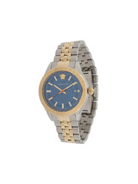 V-Urban watch Ever heard the words 'Versace' and 'minimal' in the same sentence? Once again, the brand proves that they can do just about anything with the release of their V-Urban watch. Boasting a sleek, simple design with minimal embellishments and a wearable colour palette, Versace redefines timelessness. Featuring a gold-tone stainless steel round 42mm case, an edition number on the back, a white sunray-patterned dial with a Medusa head logo embellishment, gold-tone index, a date indication at 3 o'clock, a link bracelet with a folding clasp, a 3H Swiss Quartz movement and a 3 ATM water resistance. Highlights - Gold-tone - Stainless steel - Round face - Quartz movement - Adjustable link bracelet Imported Composition stainless steel 100%, glass 100%, Sapphire Crystal 100% SIZE & FIT Model measurements Height 6 ft 1 in(1.85 m) Bust/Chest 37.79 in(96 cm) Hips 37.4 in(95 cm) Waist 30.7 in(78 cm) Measurement CIRCUMFERENCE 8.26 in(21 cm) DIAMETER 1.65 in(4.2 cm) Thickness 0.19 in(0.5 cm) WIDTH 0.78 in(2 cm)