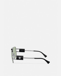 DETAILS These squared pilot sunglasses have thin metal frames, detailed with an acetate nose bridge and accented with Medusa hardware on the temples and nose bridge. - Medusa hardware - Frame color: Gunmetal - Temple color: Black - Lens color: Green - Frame material: Metal - Temple material: Metal Item: O2251-O1001263_RTU_TU_ONUL__ SIZE & FIT - Lens width: 63 mm - Bridge: 12 mm - Temple: 145 mm