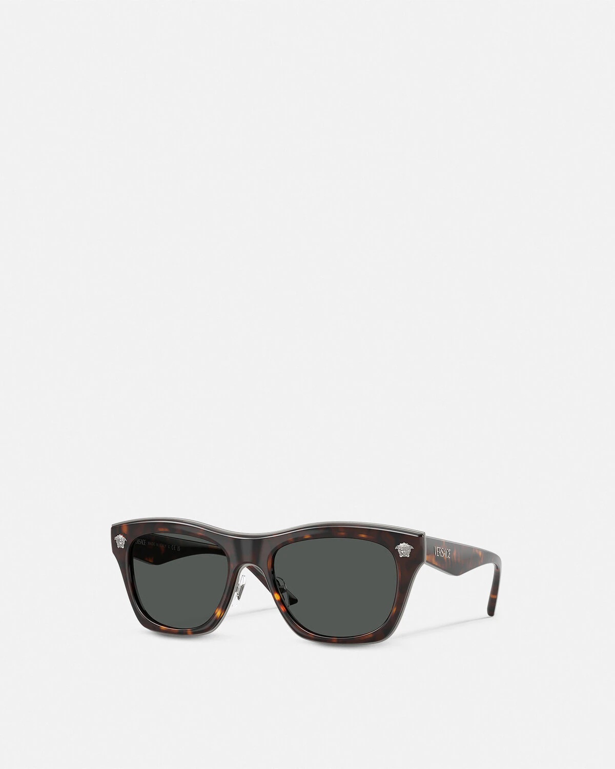 DETAILS These soft rectangular-shaped sunglasses feature an injected and metal frame and are detailed with gold-tone Medusa studs at the front and Versace logo lettering at the temples. - Medusa hardware - Versace Logo motif - Frame color: Havana - Temple color: Havana - Lens color: Dark gray - Frame: Metal - Temple: Injected Item: O2272-O1088753_RTU_TU_ONUL__ SIZE & FIT - Lens: W2.1 x H1.6" / W53 x H41.2 mm - Bridge: 0.7" / 18 mm - Temple: 5.7" / 145 mm