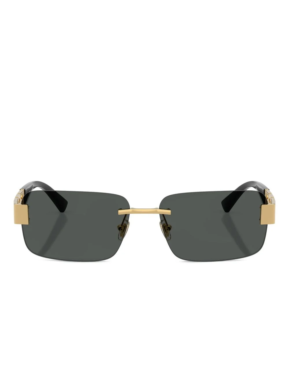 VE2298 geometric-detail sunglasses Highlights - Gold-tone - Geometric temple detail - Rimless - Nose pads - These glasses come with a protective case. Made in Italy Composition Metal 100%, Acetate 100% SIZE & FIT Measurement Arm Length 5.7 in(14.5 cm) Bridge Width 0.59 in(1.5 cm) Lens Diameter 2.28 in(5.8 cm)