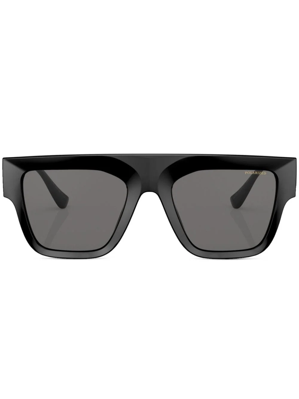 logo-embossed square-frame sunglasses Highlights - Black - Grey tinted lenses - Square frame - Embossed logo to the side - Straight arms - These glasses come with a protective case. Made in Italy Composition Plastic 100% SIZE & FIT Measurement Arm Length 5.51 in(14 cm) Bridge Width 0.78 in(2 cm) Lens Diameter 2.08 in(5.3 cm)