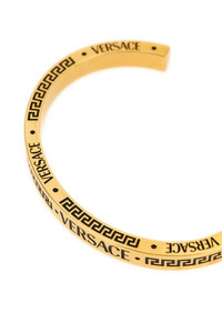 cod. 10206821A006384J120 Versace' metal bangle with engraved and enamelled Greek and Versace Logo pattern, hypoallergenic. Color: Gold Size & Fit: H 7 cm Composition: 100% metal Made in: Italy