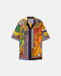 This short-sleeved regular-fit shirt in silk twill features accent enamel Medusa buttons and an all-over Versace Patchwork print, depicting a collage of archival House prints. - Versace Patchwork print - Medusa hardware - Short sleeves - Notched collar - Front button closure - Outer composition: 100% Silk Item: 1003926-1A16396_5X000
