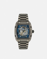 DETAILS Item: - Case: IP Gunmetal case - Dial: Blue skeleton dial with Versace logo and Medusa at 12h - Bracelet: IP Gun bracelet with butterfly buckle - Movement: DP24SKE Swiss Auto Skeleton 3-hands movement - Water Resistant: 5 ATM Item: PVE9J002-P0024_RTU_TU_PNUL__ SIZE & FIT - Case: 1.9" x 1.7" / 49.5 x 42 mm