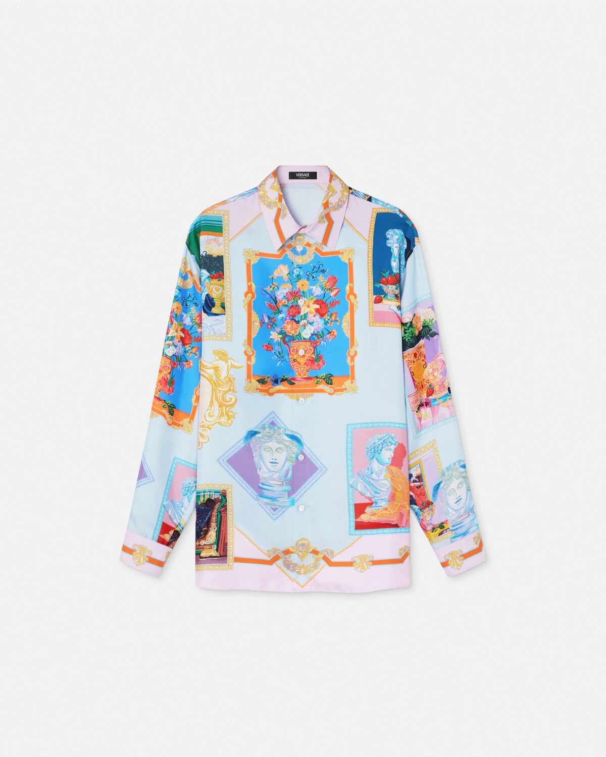 DETAILS This classic longsleeved shirt is made from silk twill and depicts the seasonal Versace Gallery print a kaleidoscopic collection of artworks featuring codes of Versace design - Versace Gallery print - Long sleeves - Pointed collar - Front button closure - Outer composition: 100% Silk Item: 1019438-1A12995_5X590&sc_eh=7801fda3e5833d9b1&sc_lid=691806493&sc_llid=25187&sc_src=email_7242436&sc_uid=ikJUDrl6nP&wt_mc=PRK.e-mail.newsletter.mail_20250124.20250124_0400_20250123_RTW-Shirts_WM_ASIA.IMAGE%20md_1098865.png SIZE & FIT - The model is 6'1" / 1.87 m tall and wears size 48 IT