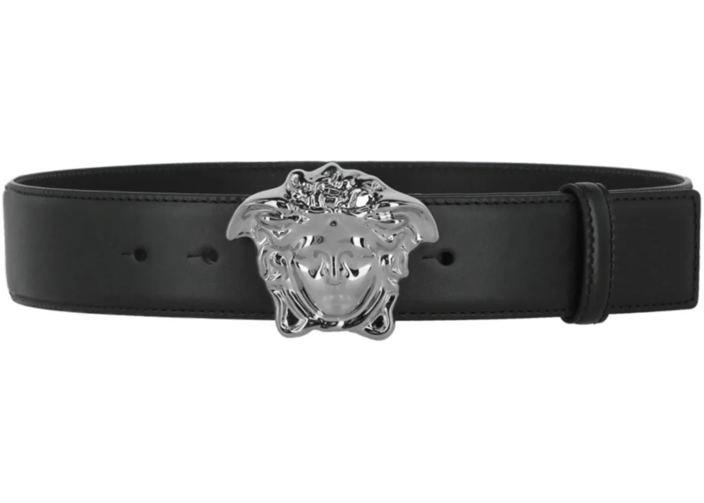 Please Note: Dust bag and box are not required for this accessory. - Dimensions 1.5W - Material Calfskin Leather - Retail Price 525 - Color Black/Ruthenium - Style DCU4140-DVTP1-1B00E - Base Model Belt - Base Model Variety La Medusa Leather - Color Generic Black - Featured false - Requester Stephanie B - Styles Belt - Uploaded By ML - Width 1.5