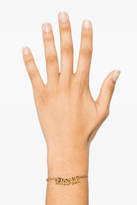 cod. 10199241A006203J000 Metal chain bracelet with 'Versace Logo' lettering charms, snap hook closure, adjustable. Color: Gold Size & Fit: W 16.5 - 23 cm Composition: 100% metal Made in: Italy