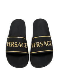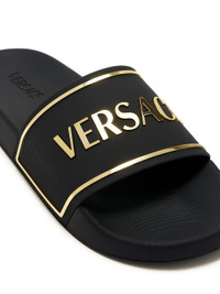 black gold-tone logo flat sole open toe slip-on style - Color: BLACK - Made in: China - Designer Style ID: 1A17013 1018496 2B130 Composition and care Outer Composition Thermoplastic Polyurethane (tpu): 100.0%, Lining Composition Thermoplastic Polyurethane (tpu): 100.0%, Sole Composition Thermoplastic Polyurethane (tpu): 100.0%