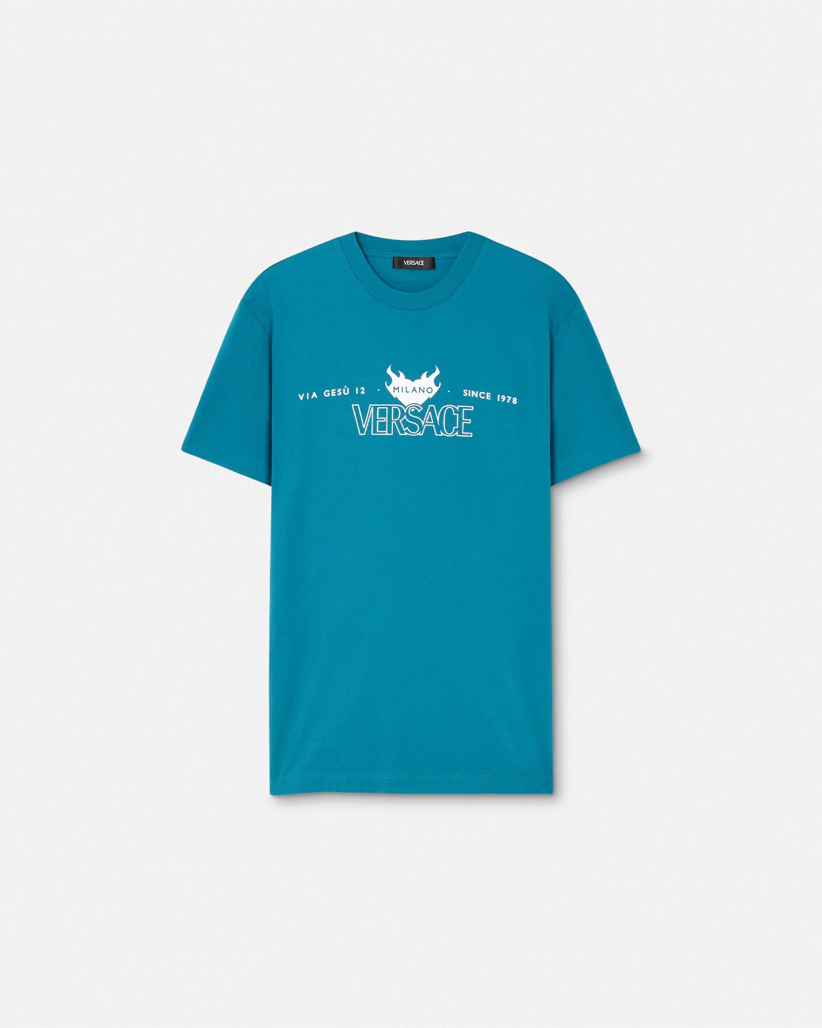 DETAILS This slimfit shortsleeved Tshirt in cotton jersey features a Versace Logo print at the chest with the Houses founding year 1978 - Versace Logo print - Short sleeves - Crewneck - Outer composition: 100% Cotton - Trim: 100% Cotton Item: 1013944-1A14377_1GO60