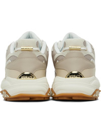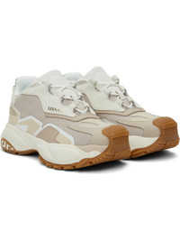 Low-top buffed calfskin, calfskin suede, and mesh sneakers in beige. - Bonded trim throughout - Logo embossed at toe and heel - Lace-up closure - Logo printed at padded tongue - Padded collar - Logo stamp at outer side - Pull-loop at heel collar - Mesh lining - Foam rubber midsole - Treaded rubber sole Supplier color: Mastic/Chiffon