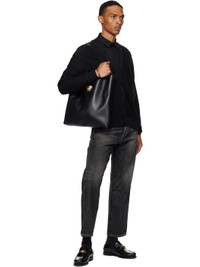Buffed leather bracelet in black. · Medusa hardware at face · Pull-through fastening · Gold-tone hardware · D4.5" Supplier color: Black/Gold Leather, metal. Made in Italy 252404M142017