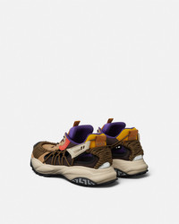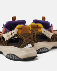 DETAILS A futuristic design fusing the codes of the House with intricate craftsmanship Versace Mercury MVS01 is set on lightweight shockabsorber Greca rubber and EVA soles Cutout mesh and suede uppers in a colourblock design are distinguished by a handknotted rope construction The footbed features dynamic screenprinted Mercury lettering and the tongue is detailed by a foil Versace logo and a jacquard Greca ribbon pull tab - Versace Logo on tongue - M_VS_01 style code on heel counter - Versace logo engraved on side rubber loop - Greca pull tab - Low top - Lace-up - Cutout - High rebound performance - Outer composition: 100% Polyester - Lining 1: 100% Nylon - Lining 2: 100% Goat leather - Trim 1: 100% Calf leather Trim 2: 80% Nylon, 20% Elastane - Trim 3: 100% Calf leather - Sole: 100% Rubber Item: 1016711-1A12677_6Y40P SIZE & FIT - The shoe weighs approximately 24.7 oz / 0.7 kg for the model size 44 IT - Footbed: comfortable - Fits true to size, take your normal size