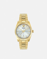 DETAILS The Versace Millenyium Gent watch combines elegance and heritage with the Houses Medusa and Versace Logo on the dial at 12 oclock The Greca motif adorns the inner dial top ring and metal loop adding a touch of modern flair to its classic design All Versace watches are guaranteed by the Swiss Made marking All stainless steel is recycled - Case: IP2N case with Versace Logo on top ring - Dial: White dial with Greca on inner ring / Versace Logo and Medusa at 12h / date window at 6h - Bracelet: IP2N bracelet with butterfly buckle - Movement: RONDA 515.2 Swiss Quartz 3 hands movement - Water Resistant: 5 ATM Item: PVE0G006-P0025_PNUL SIZE & FIT - Case: 1.6" / 40 mm