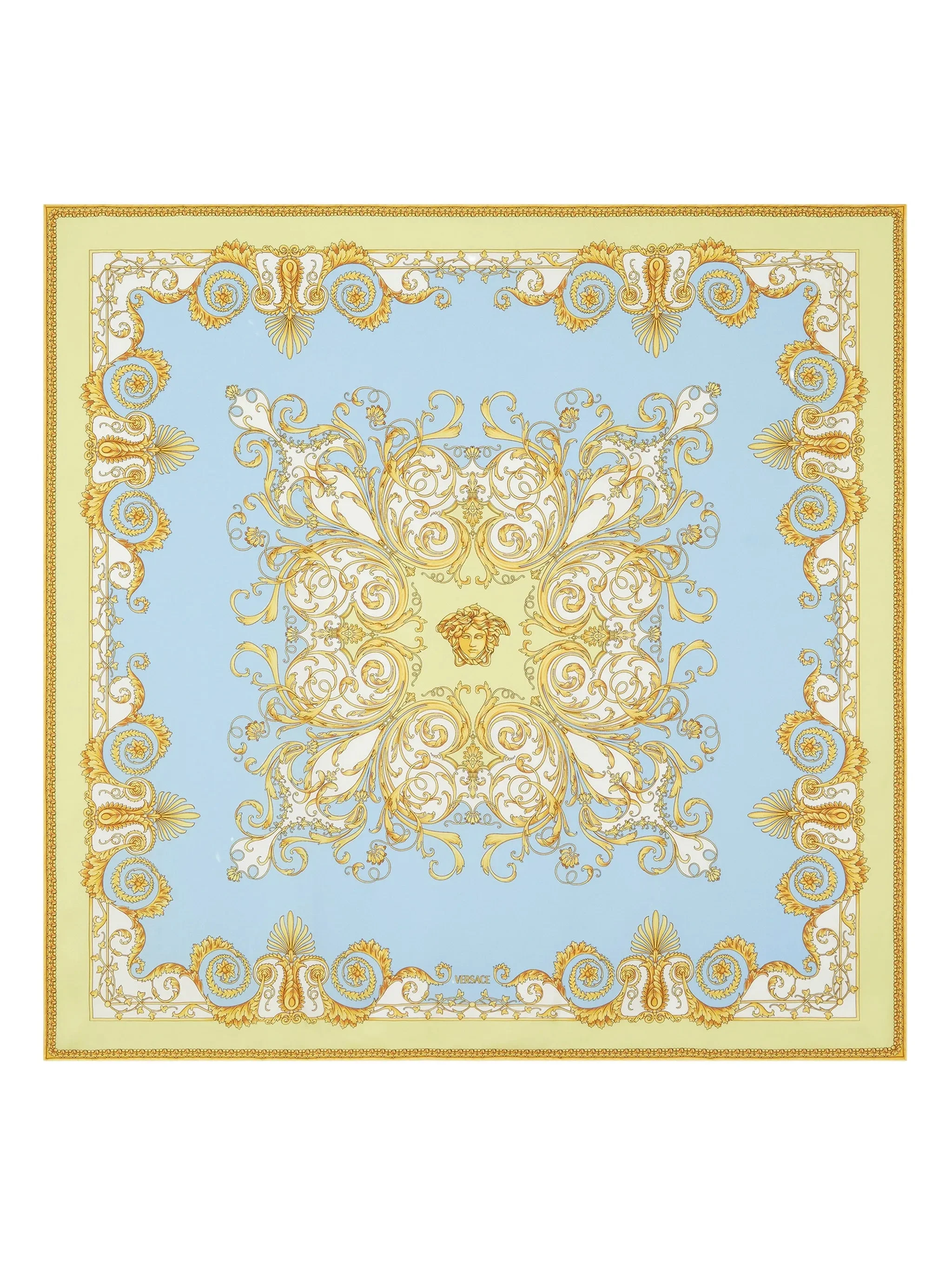 light blue and gold silk Spring Barocco print hand-rolled edges - length: 90.0 centimetres, width: 90.0 centimetres - Color: BLUE/GOLD - Made in: Bangladesh - Designer Style ID: 1A17059 1001600 5Y580 Composition and care Silk: 100.0%