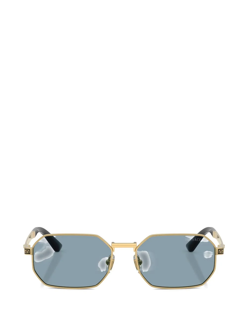 Versace VE2297 Make a bold statement with the Versace VE2297 sunglasses. The rectangular frames offer sleek, geometric angles, while the polished gold metal adds a touch of luxury. Adjustable nose pads ensure all-day comfort, and classic blue lenses lend a timeless vibe. Perfect for elevating everyday looks with a pop of opulence, these Versace sunglasses exude elegance and style. Made in United States Composition Metal 100%