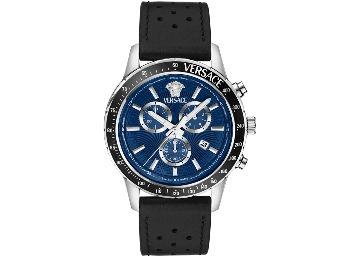 - Reference Number VEZCA0124 - Case Size 44mm - Case Material Stainless Steel - Band Leather - Movement Quartz - Dial Blue Guilloche - Retail Price 1195 - Base Model Versace Sport Chrono Leather - Featured false - Requester Kelsey K - Styles Casual - Uploaded By VL