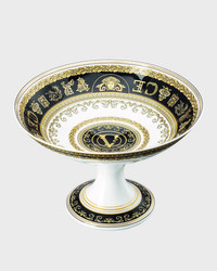This elegant footed bowl is embellished with a central Barocco letter V and enriched with black and golden accents a luxury essential for a sophisticated dining experience. Crafted of porcelain Approx. 13.9"Dia. x 9.3"T Item Weight (Lbs.): 5.4 Hand wash Made in Germany