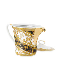 Porcelain teapot striped in black and white. Signature Medusa and floral pattern in gold-tone. H8 x W5.25 x D9.5 / H20 x W13 x D25 cm Part of the limited edition Rosenthal meets Versace collection. Supplier color: Nero