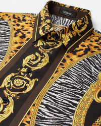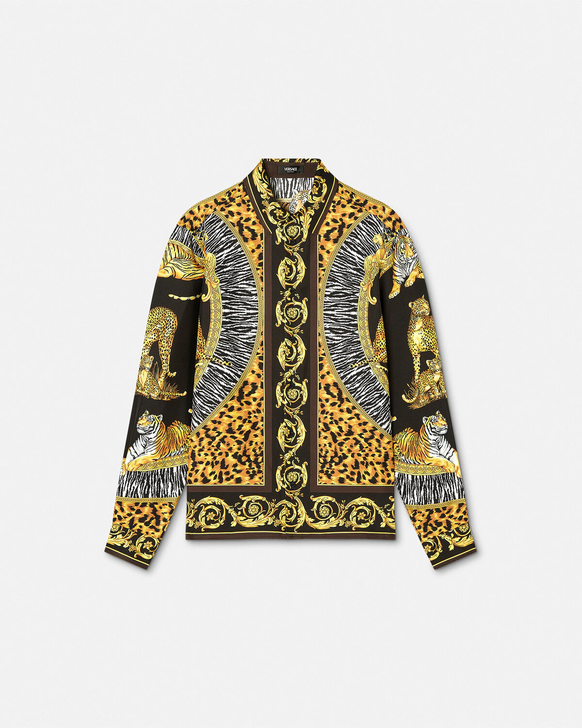 DETAILS This slim fit longsleeved shirt in silk twill features a Wild Cats print a reinterpretation of an archival print of the animal kingdom with zebra and leopard patterns - Wild Cats print - Long sleeves - Pointed collar - Front button closure - Buttoned cuffs - Outer Composition: 100% Silk Item: 1021715-1A15792_5E670