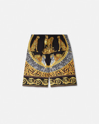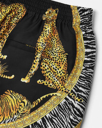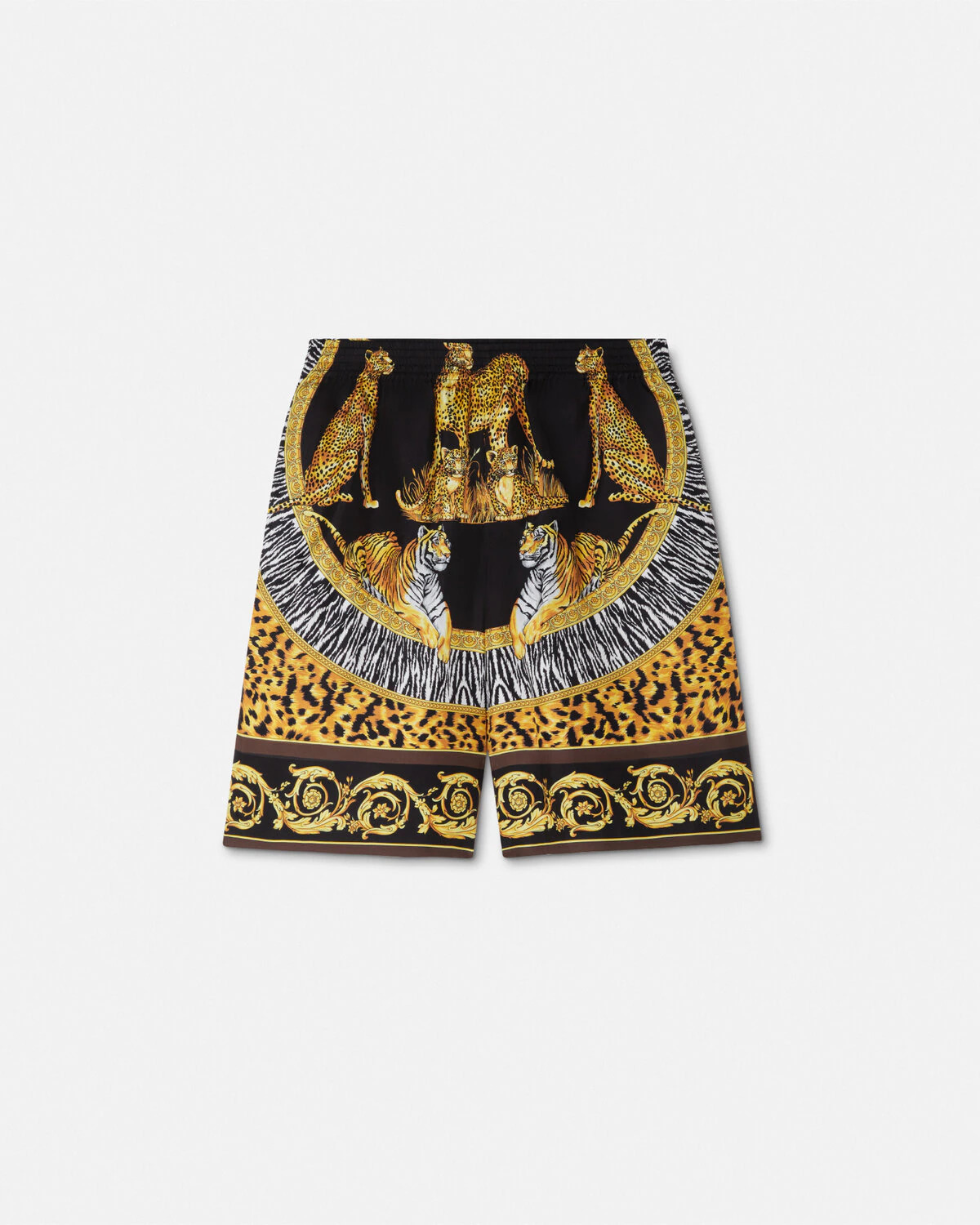 DETAILS Kneelength shorts in silk twill featuring an allover Wild Cats print a reinterpretation of an archival print of the animal kingdom with zebra and leopard patterns - Wild Cats print - Side pockets - Back welt pocket - Elastic waistband - Outer Composition: 100% Silk - Lining: 100% Cupro Item: 1002476-1A15792_5E670 SIZE & FIT - The model is 6'2" / 1.87 m tall and wears size 48 IT