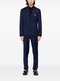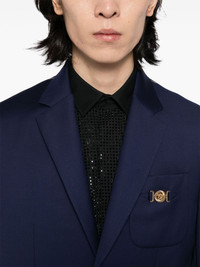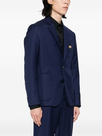 single-breasted blazer Highlights - Navy blue - Front button fastening - Embroidered logo - Two front patch pockets - American rear vent Made in Italy Composition Wool 100% SIZE & FIT Model measurements Height 6 ft 2 in(1.87 m) Bust/Chest 33.07 in(84 cm) Hips 35.43 in(90 cm) Waist 26.77 in(68 cm) FittingInformation Designed for a slim fit, offering a comfortable fit that sits just away from the body Made from a midweight non-stretch fabric