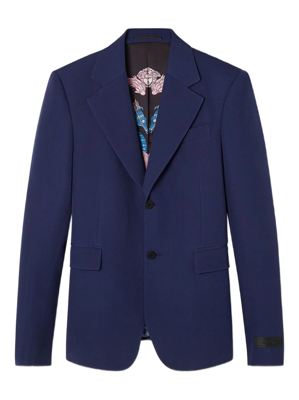 wool blazer Highlights - Navy blue - Front button fastening - Jetted chest pocket - Front flap pockets - Buttoned cuffs Made in Italy Composition Outer: Virgin Wool 100% Lining: Cupro 100%, Cotton 100%, Recycled Polyester 100%
