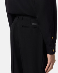 Formal pants in grain de poudre wool detailed by a tonal jacquard Versace tailoring label at the back. - Versace tailoring label - Belt loops - Concealed hook and zip closure - Side pockets - Back welt pockets - Outer Composition: 100% Pure Virgin Wool - Yarn made from responsibly-sourced wool - Lining 1: 100% Cupro - Lining 2: 100% Cotton Size & Fit - The model is 6'2" / 1.87 m tall and wears size 48 IT Item: 1020574-1A09838_1B000