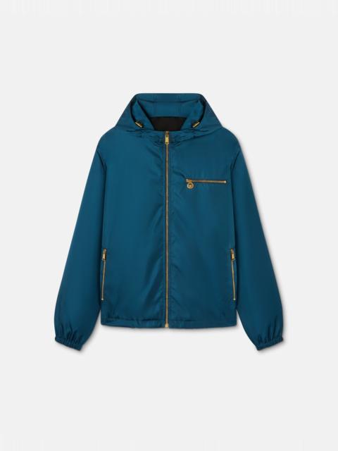 DETAILS This nylon windbreaker jacket has light padding and features a drawstring hood and a Medusa Biggie zip puller on the chest pocket - Medusa Biggie hardware - Long sleeves - Drawstring hood - Front zip closure - Chest and side zipped pockets - Chest welt pocket - Elastic waistband and cuffs - Outer composition: 100% Nylon - Lining 1: 100% Polyester - Lining 2: 100% Cotton Item: 1018851-1A02928_1B000 SIZE & FIT - The model is 6'1" / 1.87 m tall and wears size 48 IT
