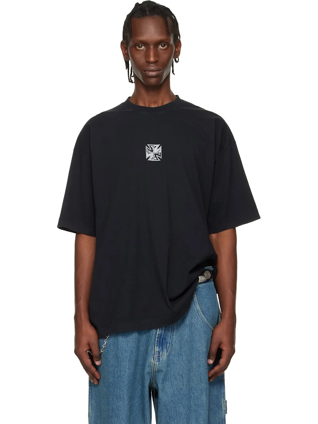 Cotton jersey T-shirt. · Rib-knit crewneck · Logo graphic printed at chest · Dropped shoulders · Logo embroidered at back collar Supplier color: Black Body: 100% cotton. Trim: 97% cotton, 3% elastane. Made in Portugal 261669M213028