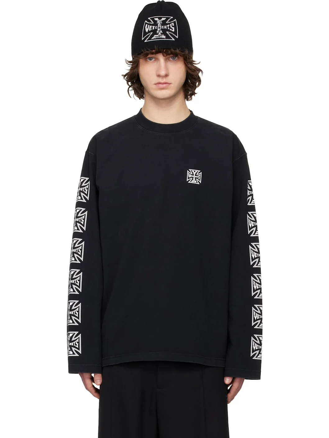 Black Biker Cross Sleeves Longsleeve T-shirt