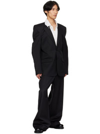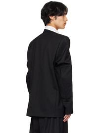 Stretch virgin wool barathea blazer. · Notched lapel · Button closure · Welt pocket at chest · Flap pockets at front · Padded shoulders and elbows · Vents at back hem · Welt pockets at interior · Full satin lining Supplier color: Black Body: 98% virgin wool, 2% elastane. Lining: 100% viscose. Made in Italy 252669M195002