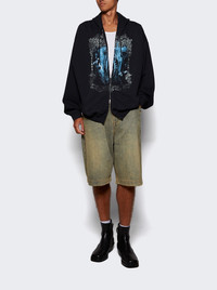 Butterfly Oversized Zip-up Hoodie Washed Black