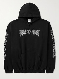 Vetements teams up with English extreme metal band Cradle of Filth on a collection appropriately inspired by concert merch. Printed with gothic-style logos, this hoodie is made from loopback cotton-jersey and has a signature oversized fit. Size & Fit - Intended to be oversized; we recommend sizing down if you prefer a closer fit - Mid-weight, slightly stretchy fabric - Model is shown wearing a M - Model measures: chest 36"/ 92cm, height 6'2"/ 188cm Details & Care - Black and white loopback cotton-jersey - 100% cotton - Machine wash