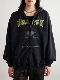 + Cradle of Filth Oversized Printed Cotton-Jersey Zip-Up Hoodie Black