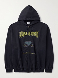 Vetements' hoodie is part of its collaboration with English extreme metal band Cradle of Filth. This zip-up hoodie is cut for an oversized fit from loopback cotton-jersey and printed with the cover of PanDaemonAeon, a making-of documentary featuring promo videos, commentary and live footage from a gig at the London Astoria in '98. Size & Fit - Intended to be oversized; we recommend sizing down if you prefer a closer fit - Ribbed hem - Mid-weight, slightly stretchy fabric - Model is shown wearing a M - Model measures: chest 38"/ 96cm, height 6'2"/ 188cm Details & Care - Multicoloured loopback cotton-jersey - Two-way zip fastening - 100% cotton - Machine wash