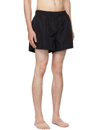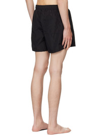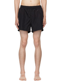 Polyester taffeta swim shorts. · Drawstring at elasticized waistband · Three-pocket styling · Graphic printed at front hem · Vented side seams · Logo embroidered at back pocket · Full mesh brief-style lining Supplier color: Black Body: 100% polyester. Lining: 95% polyester, 5% elastane. Made in Italy 252669M208000