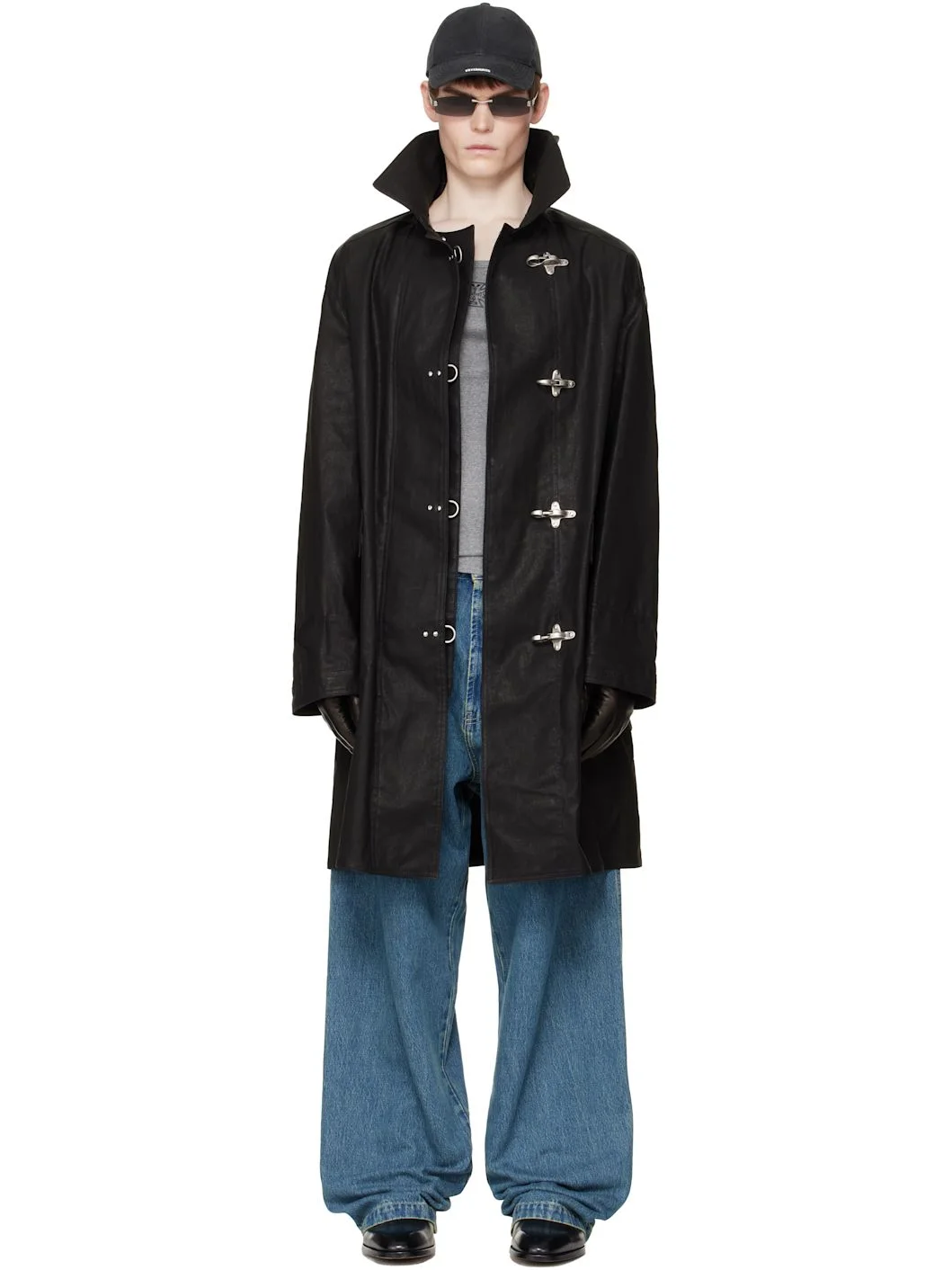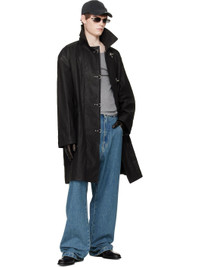 Coated cotton twill coat. · Spread collar · Press-stud closure with clasp placket · Flap pockets with grommets at front · Logo embroidered at cuff · Unlined Supplier color: Black 100% cotton. Made in Italy 261669M176000