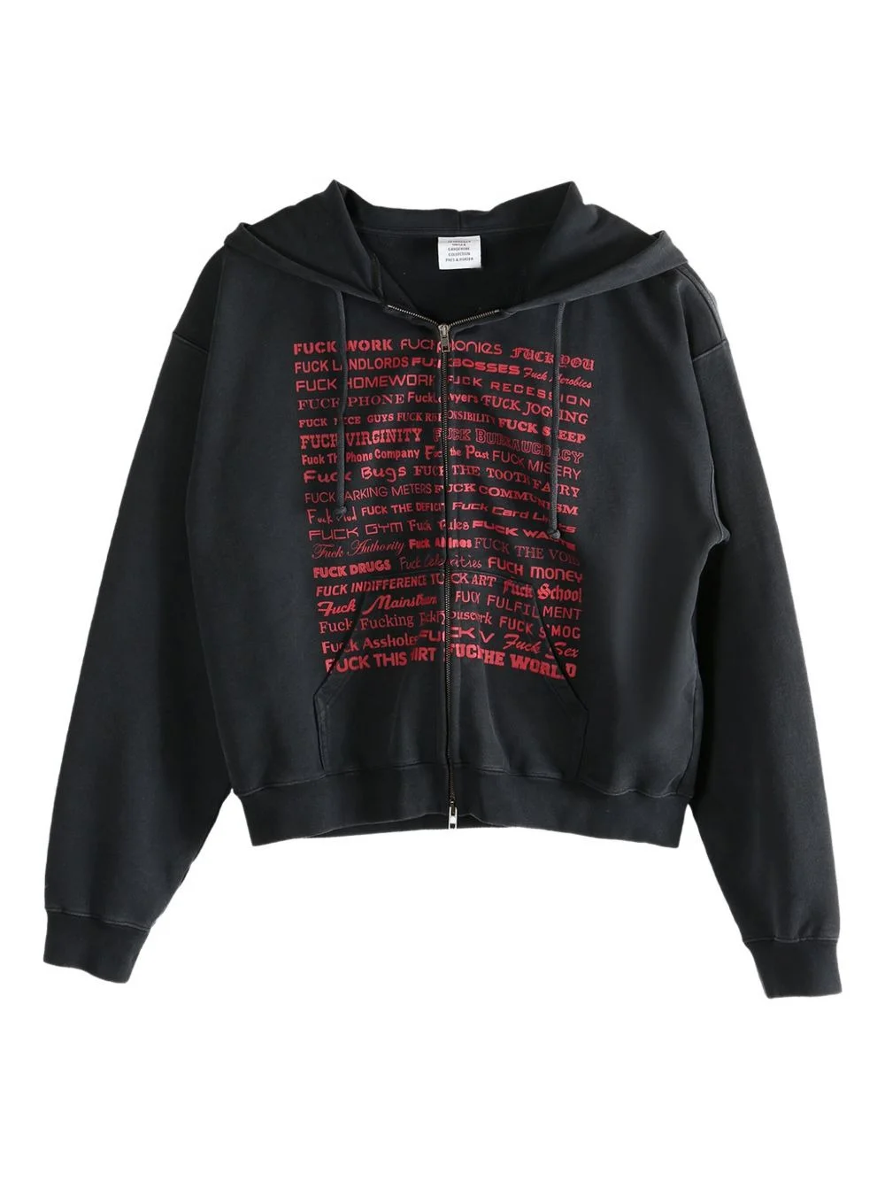 text-print zip-up hoodie Highlights - Black - Cotton construction - Zip fastening - Drawstring hood - Text print - Long sleeves Imported Composition Cotton 80%, Polyester 20% Washing instructions Read Manufacturer Guidelines