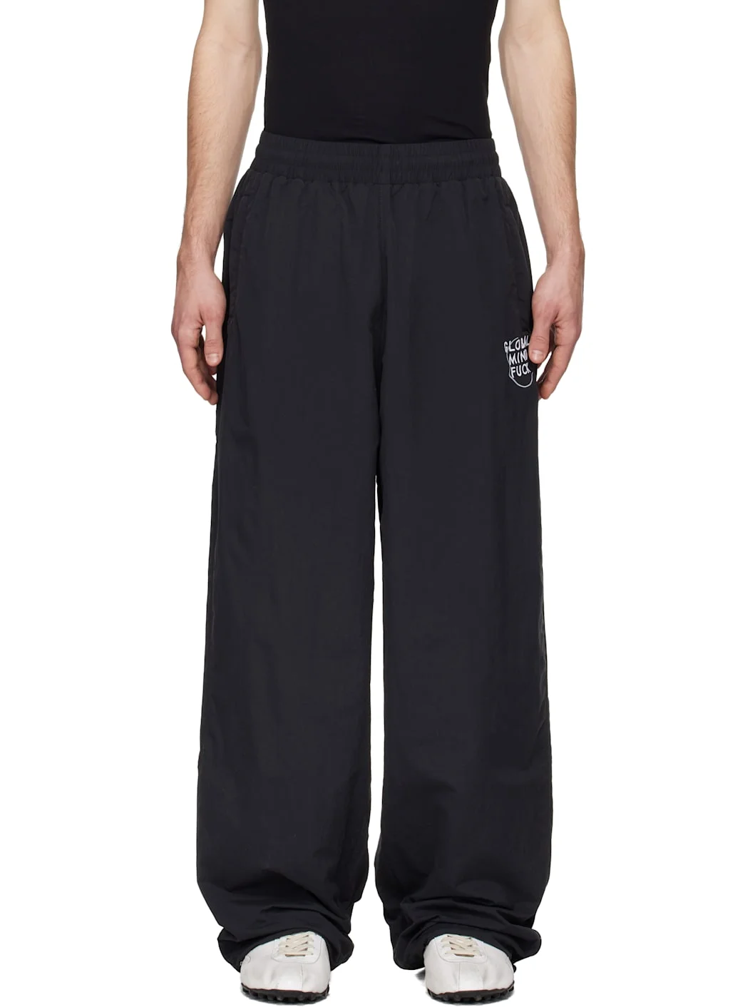Nylon taffeta track pants. · Concealed drawstring at elasticized waistband · Three-pocket styling · Text embroidered at front · Bungee-style drawstring at cuffs · Piping at outseams · Logo embroidered at back pocket · Full cotton poplin lining Supplier color: Black Body: 100% nylon. Lining: 100% cotton. Made in Italy 261669M191000