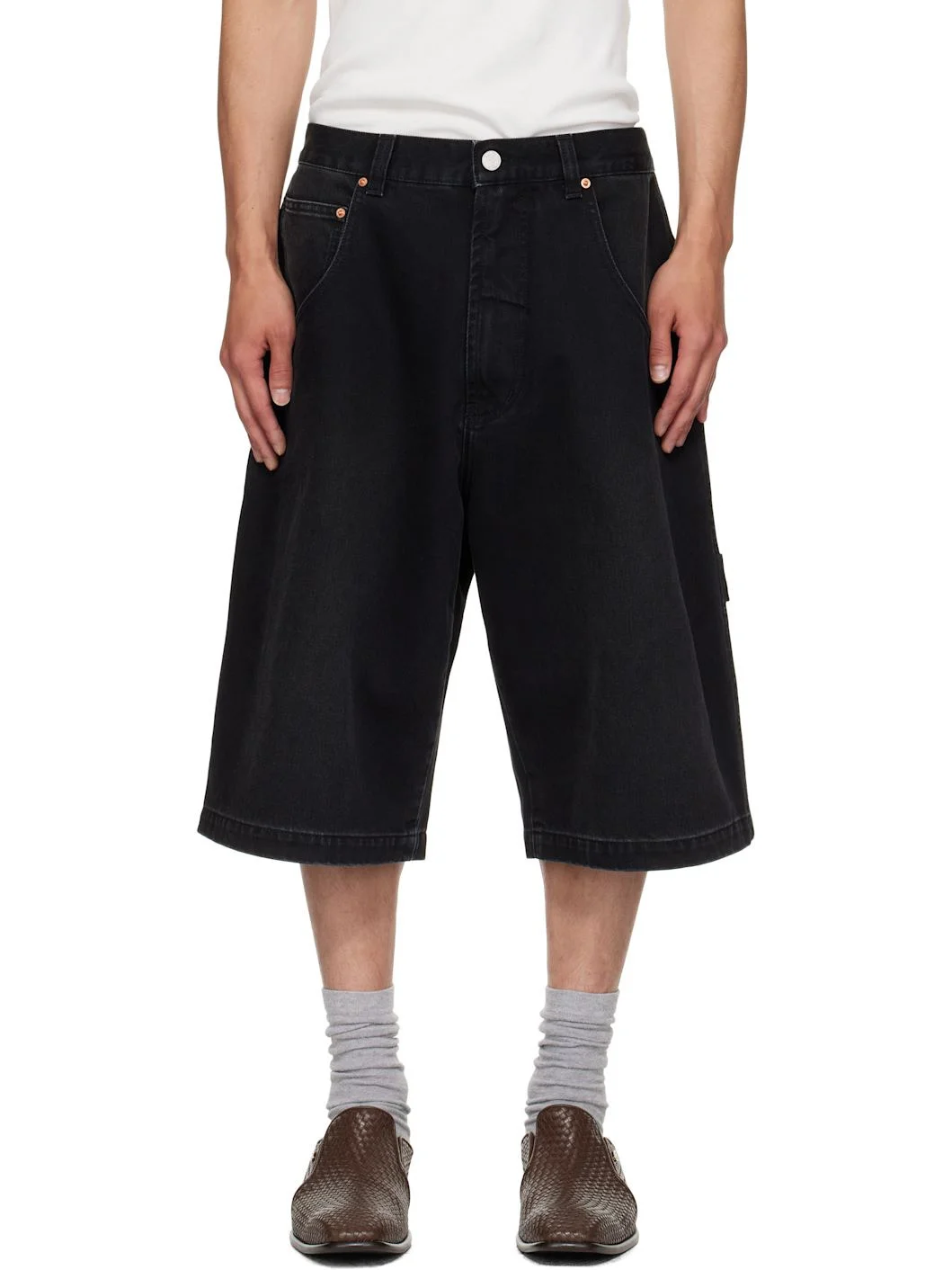 Non-stretch denim shorts. · Fading throughout · Belt loops · Five-pocket styling · Zip fly · Cargo pockets and logo patch at outseam · Hammer loop at outseam Supplier color: Vintage black Body: 100% cotton. Trim: 65% polyester, 35% cotton. Made in Italy 252669M193005
