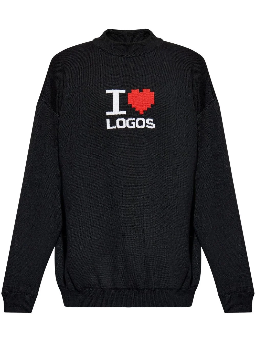 slogan-intarsia sweater Highlights - Black - Crew neck - Long sleeves - Ribbed cuffs and hem Made in Italy Composition Wool 100%