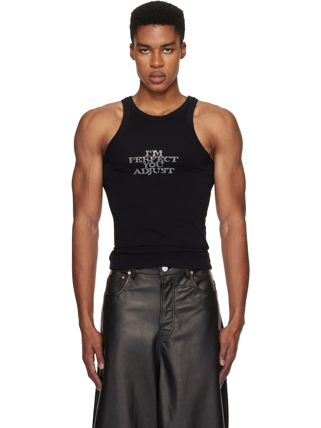 Stretch cotton jersey tank top. · Rib-knit crewneck and armscyes · Crystal-cut text at chest · Logo embroidered at back collar Supplier color: Black