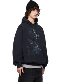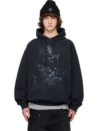 Cotton-blend French terry hoodie. · Fading and distressing throughout · Embroidered logo and drawstring at hood · Graphic printed at front · Kangaroo pocket at front · Rib-knit hem and cuffs · Dropped shoulders Supplier color: Washed-out black 80% cotton, 20% polyester. Made in Portugal 261669M202007